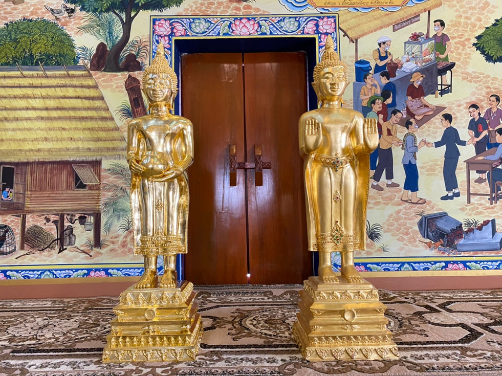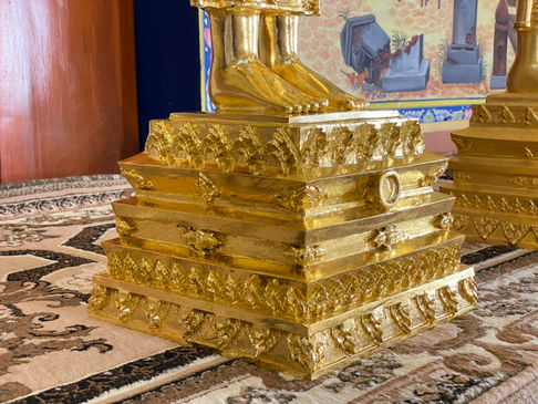 เป็นงานที่ต้องทำการดัดแปลงจากองค์ต้นแบบปางห้ามญาติที่มีอยู่เดิมอยู่แล้วที่ตั้งอยู่บนแท่นพระประธานในโบสถ์พอเพียง วัดโพธิ์ศรี (โพธิ์ศรี ห้วยทราย) เราจึงใช้เทคนิคงาน 3D photoscan เพื่อให้ได้สัดส่วนที่ใกล้เคียงตรงตามแบบมากที่สุด เพราะต้องตั้งคู่กันกับองค์เดิมจึงมีการปรับสัดส่วนให้ตรงกันกว่า 50 จุด เป็นต้นแบบเททองเมื่อเสร็จเรียบร้อยทีมงานก็ทำงานปิดทองคำแท้ 97% เพื่อให้งามบริบูรณ์ก่อนนำไปประดิษฐาน