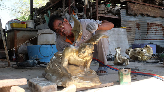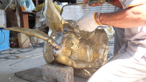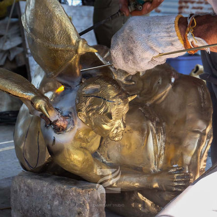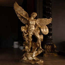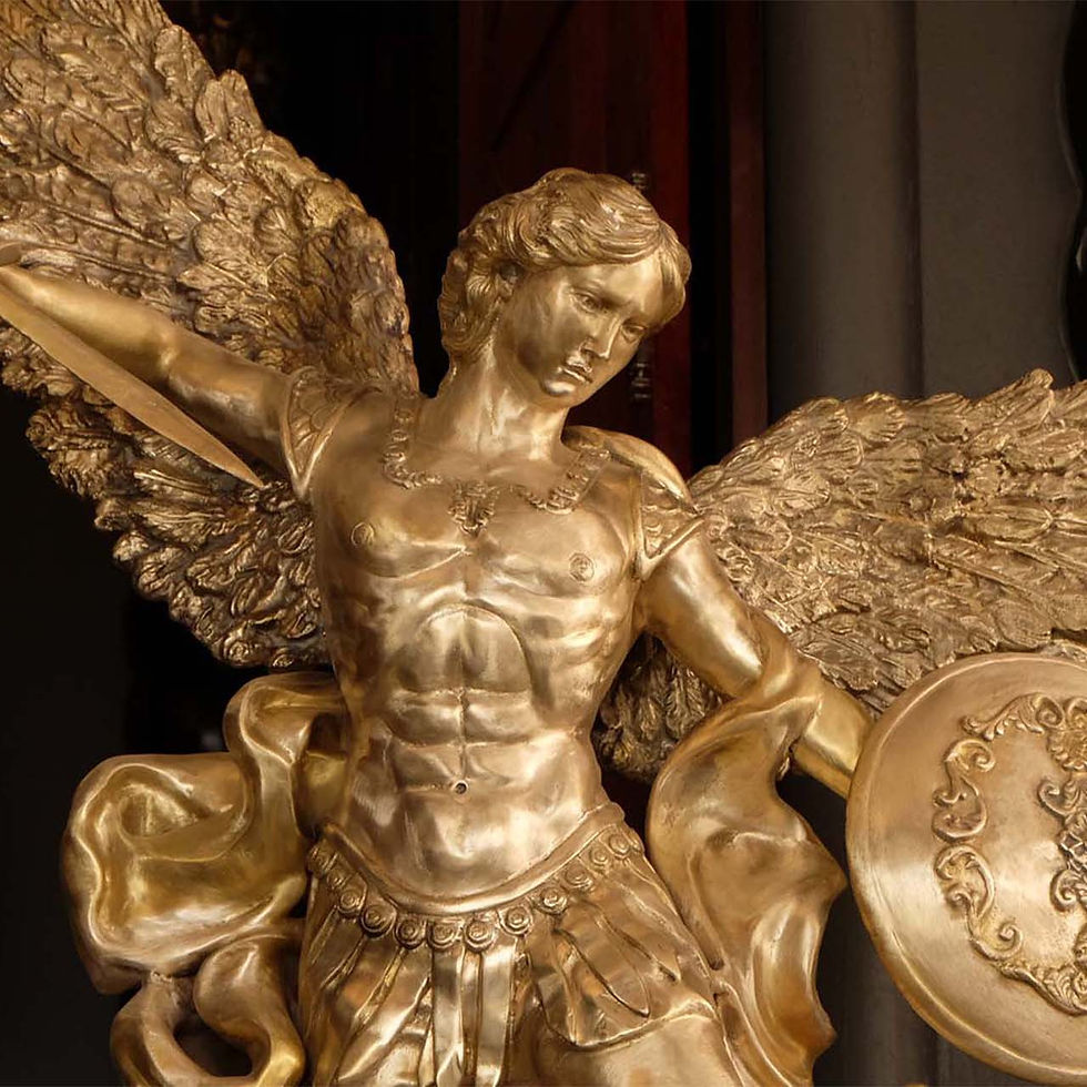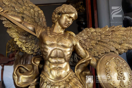 ZAMRIT ART STUDIO | St. Michael Bronze Sculptureประติมากรรมหล่อทองเหลือง อัครทูตสวรรค์มิคาเอล (Michael) แปลว่า "ผู้เหมือนพระเจ้า" ผู้กำราบ "ซาตาน" ขนาดความสูงจากฐานถึงหัว 1.25 เมตร "จากหนังสือวิวรณ์ เล่มที่ 27 ในไบเบิล ได้กล่าวว่าอัครทูตสวรรค์มิคาเอลเป็นผู้นำกองทัพสวรรค์เข้าต่อสู้กับลูซิเฟอร์ (ทูตสวรรค์ที่กบฏเพราะความทระนงตน ทำให้หลงผิดและก่อกบฏขึ้น) และเหล่าซาตาน จนขับไล่พวกซาตานลงไปยังแผ่นดินโลกได้สำเร็จ"