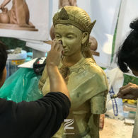 รูปปั้นพระแม่ธรณี และพระแม่โพสพ เป็นอีกหนึ่งผลง านของทีมงานสัมฤทธิ์อาร์ตกรุ๊ป ขนาดสูง 90 เซนติเมตร ขนาดเท่าคนจริง หล่อด้วยทองเหลือง Brass